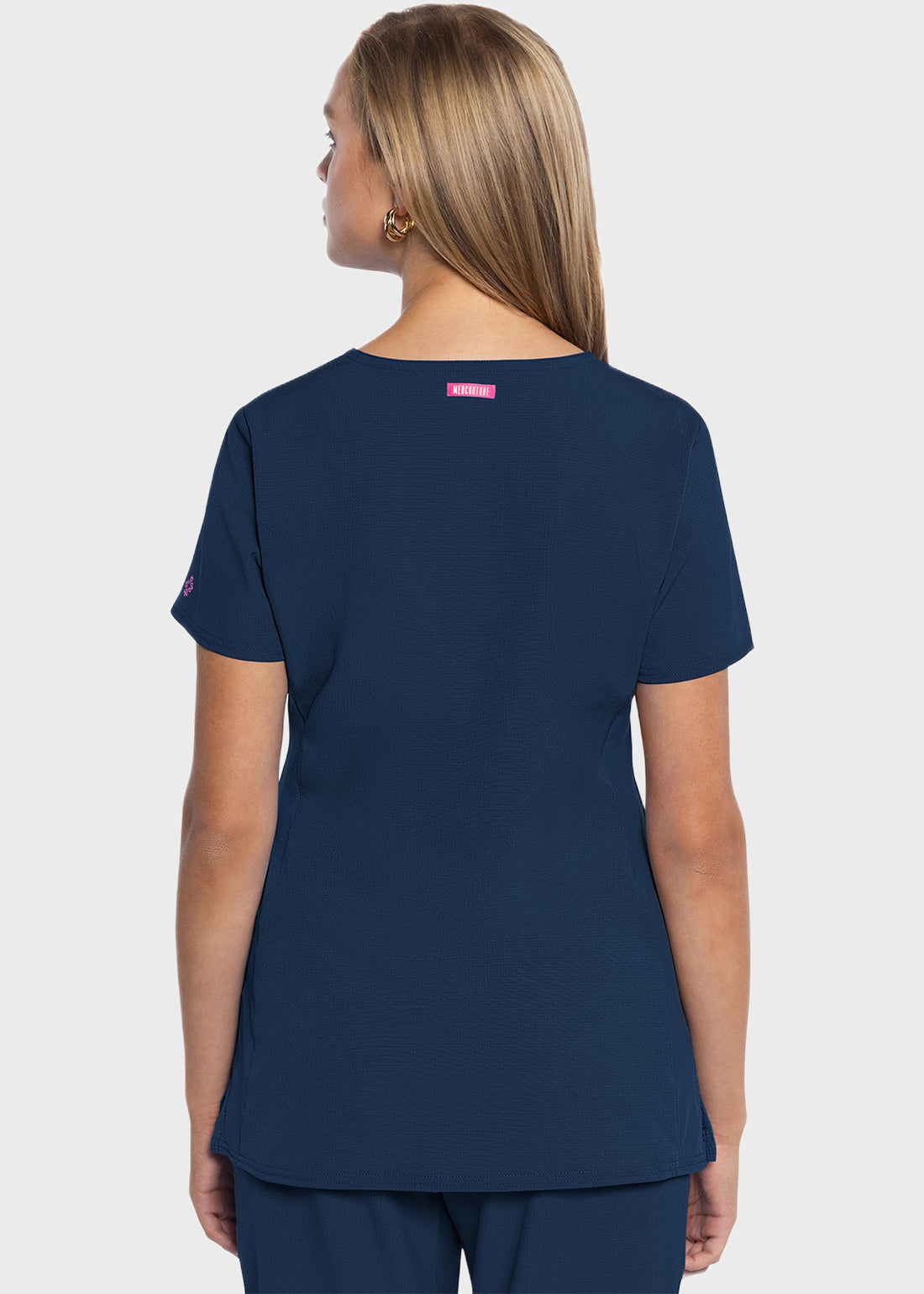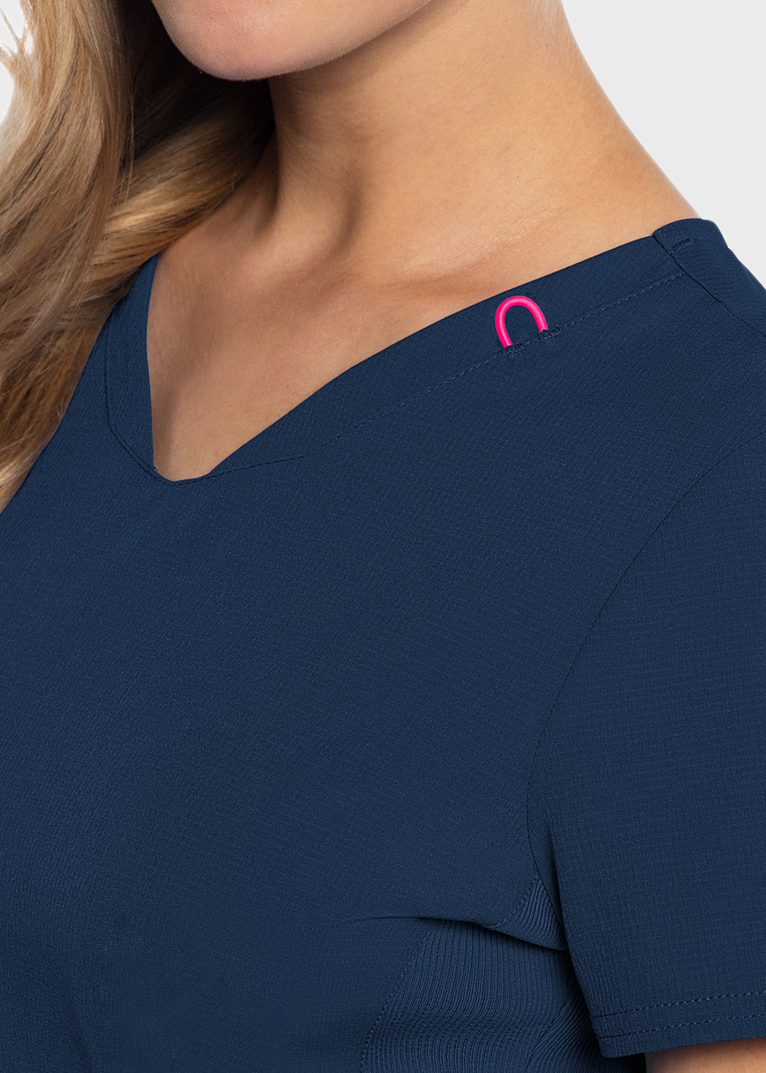 Tailored to perfection, the Med Couture Amp V-neck scrub top is effortlessly chic. With an impressive shaped neckline, instrument loops, rib-knit side panels with vents that aids in movement and three spacious pockets for storage, the scrub top is relaxed and impressive.