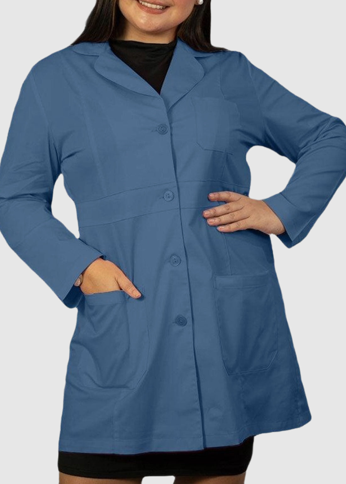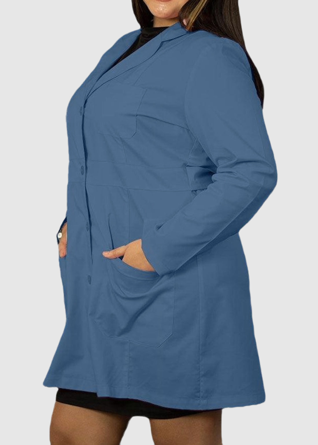 Panda Uniform Custom Women Medical Consultation Imported LabCoat Look sharp and stay organized with the Panda Uniform Custom Women Medical Consultation Lab Coat. Featuring a notch lapel collar, stylish black belt, front button closure, two large front pockets, and a chest pocket, it's both functional and fashionable. Center back length: 34 inches.